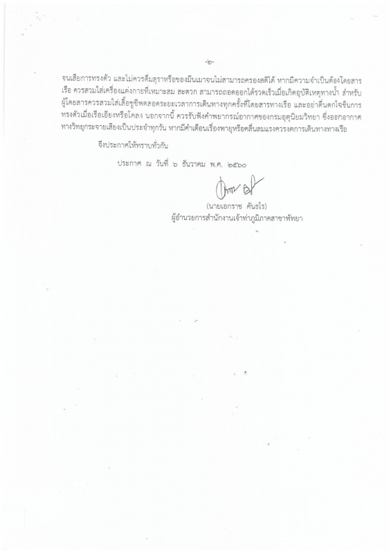 ประกาศเตือนให้ใช้ความระมัดระวังในการเดินเรือและใช้เรือ ในเทศกาลปีใหม่ พ.ศ.2561