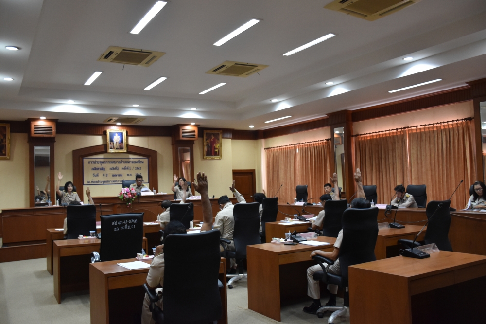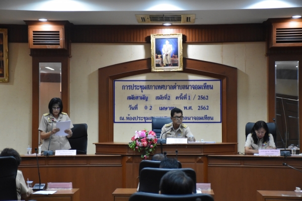 สมัยสามัญ สมัยที่ 2 ประจำปี พ.ศ.2562 ครั้งที่ 1/2562 วันอังคารที่ 2 เมษายน 2562 เวลา 10.00 น. ณ ห้องประชุมสภาเทศบาลตำบลนาจอมเทียน
