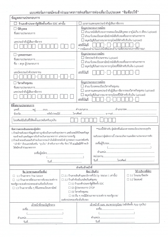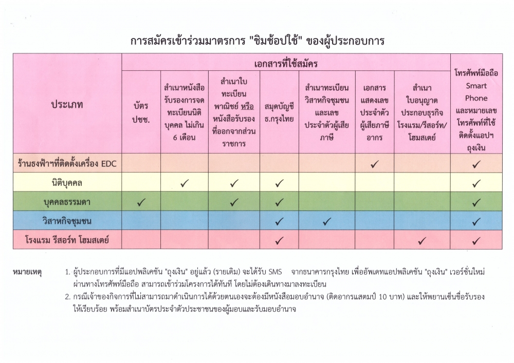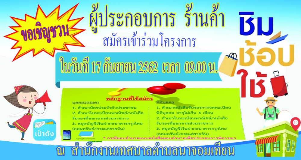ขอประชาสัมพันธ์เชิญชวนผู้ประกอบการสมัครเข้าร่วมโครงการ "ชิม ช้อป ใช้"