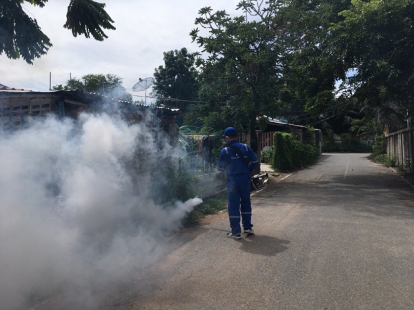 กองสาธารณสุขและสิ่งแวดล้อม ออกดำเนินการพ่นหมอกควันกำจัดยุงลายเพื่อป้องกันโรคไข้เลือดออกและโรคชิกุนคุนย่า ในพื้นที่ม.1 หลังจากได้รับรายงาน จากรพสต.นาจอมเทียนพบผู้ป่วย เป็นโรคชิกุนคุนย่า จำนวน1ราย