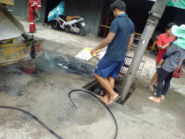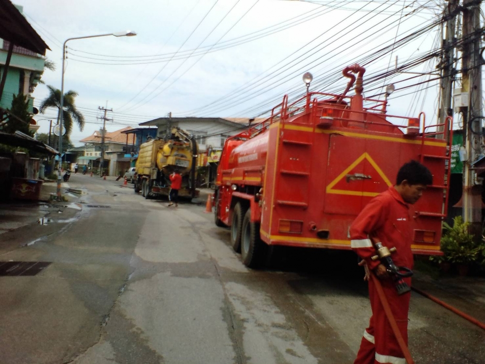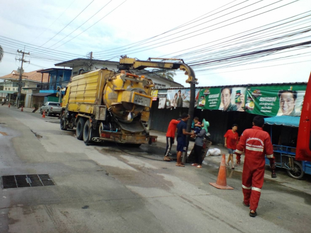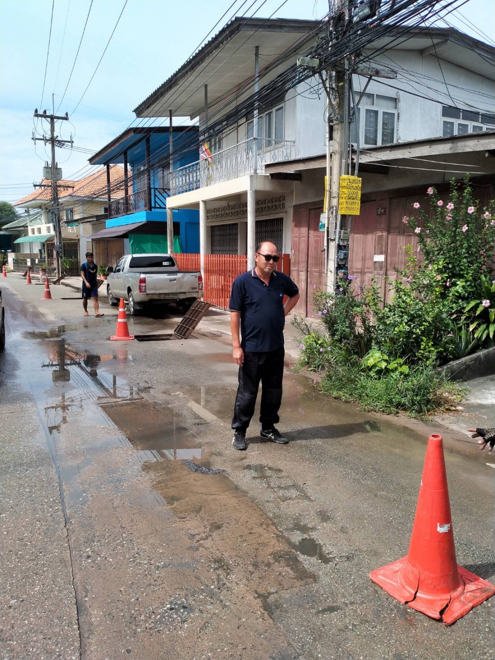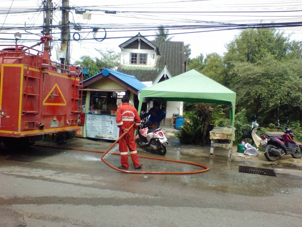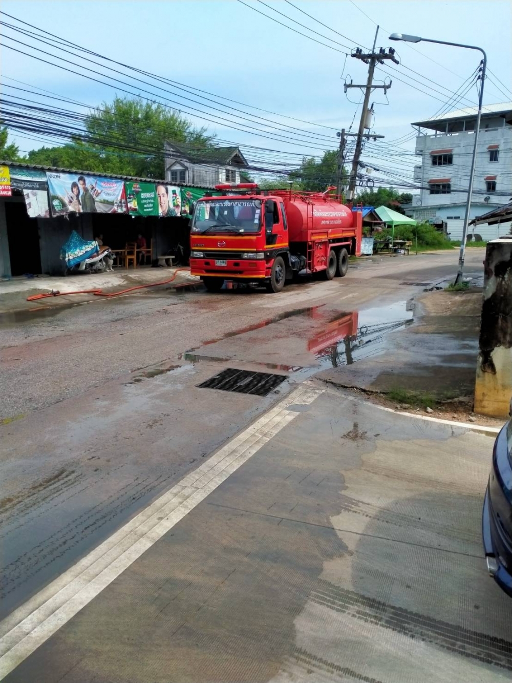 ในวันที่ 7 ตุลาคม 2563 เทศบาลตำบลนาจอมเทียน ออกทำความสะอาดล้างท้อบริเวณตลาดบ้านอำเภอ