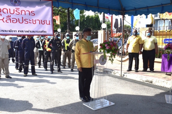 และขอให้ทุกคนปฏิบัติตามมาตรการการป้องกันภายใต้สถานการณ์การแพร่ระบาดของโรคไวรัสโควิด-19 สวมหน้ากาก วัดอุณหภูมิ ทำความสะอาดมือด้วยเจลแอลกอฮอล์ 70% หรือน้ำและสบู่ ก่อนให้บริการ ณ บริเวณหน้าสำนักงานเทศบาลตำบลนาจอมเทียน