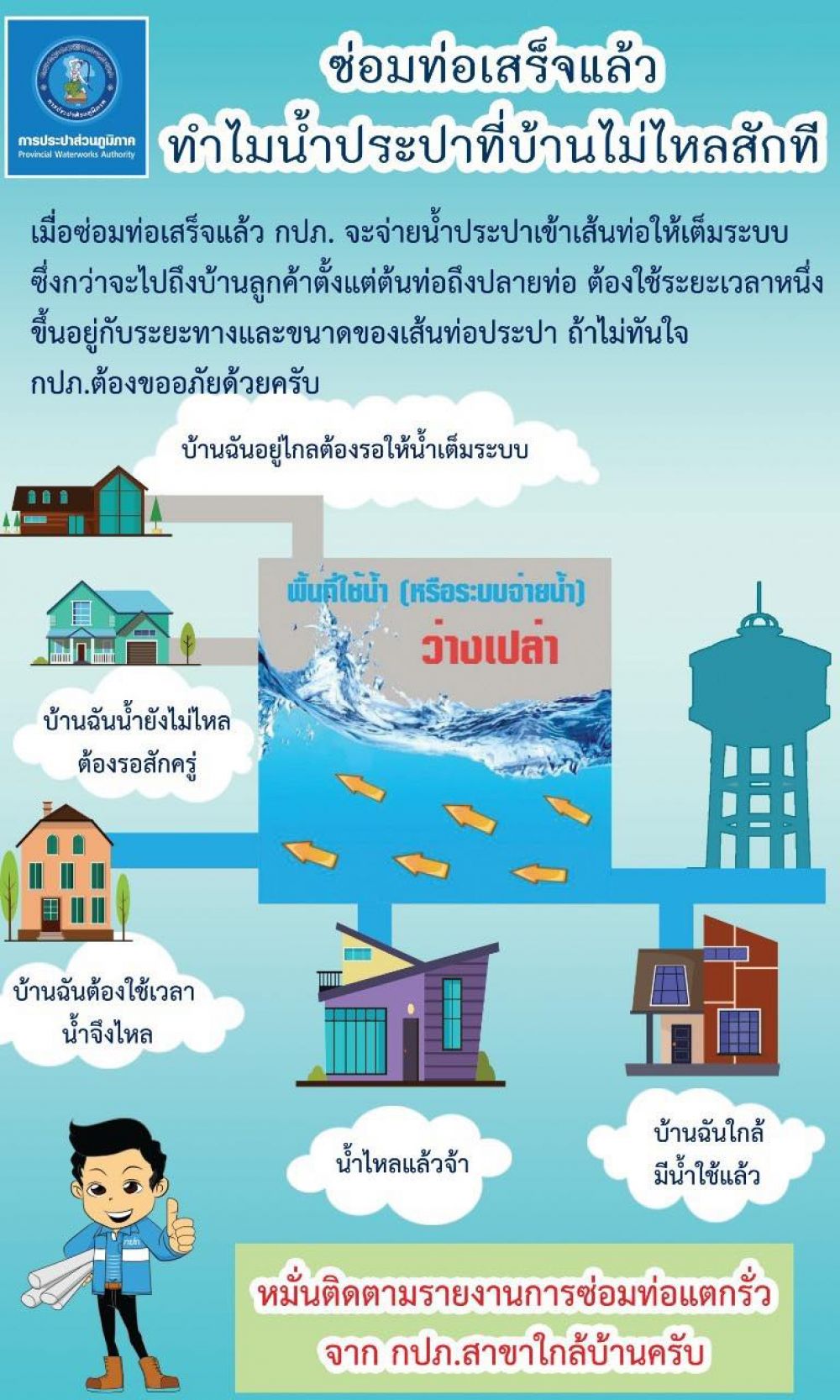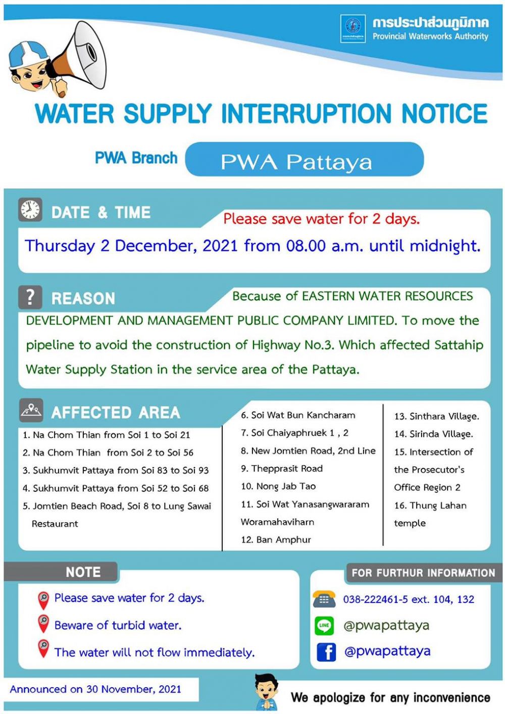 หยุดจ่ายน้ำ เพื่อย้ายแนวท่อหลบการก่อสร้างทางหลวงหมายเลข 3 ในวันที่ 2 ธันวาคม 2564