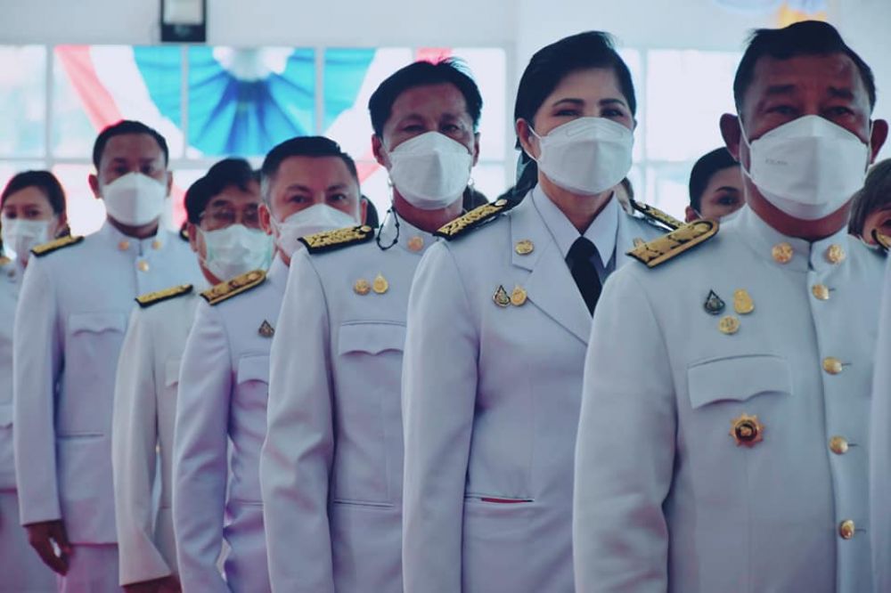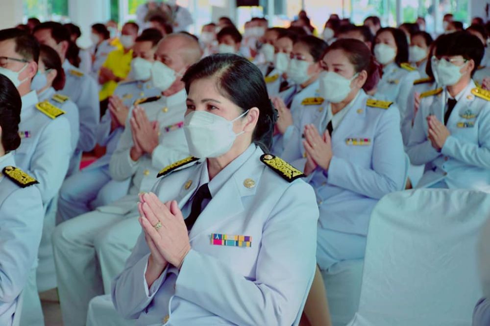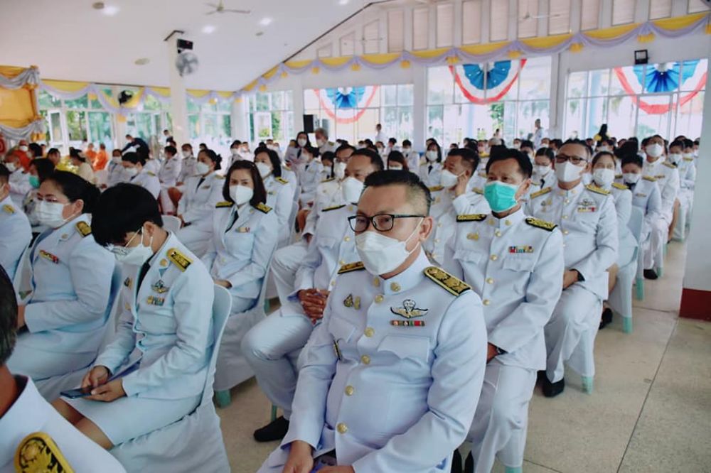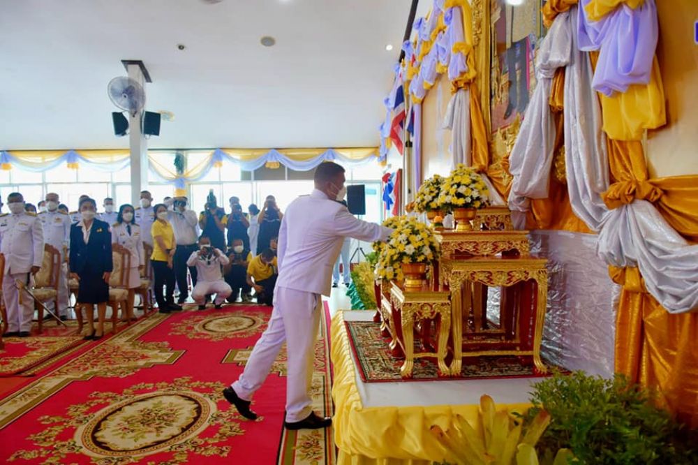 ว่าที่พันตรีชาติชาย ศรีโพธิ์อ่อน นายอำเภอสัตหีบ เป็นประธานในพิธี จุดธูปเทียนบูชาพระรัตนตรัย ถวายธูปเทียนแพหน้าพระฉายาลักษณ์