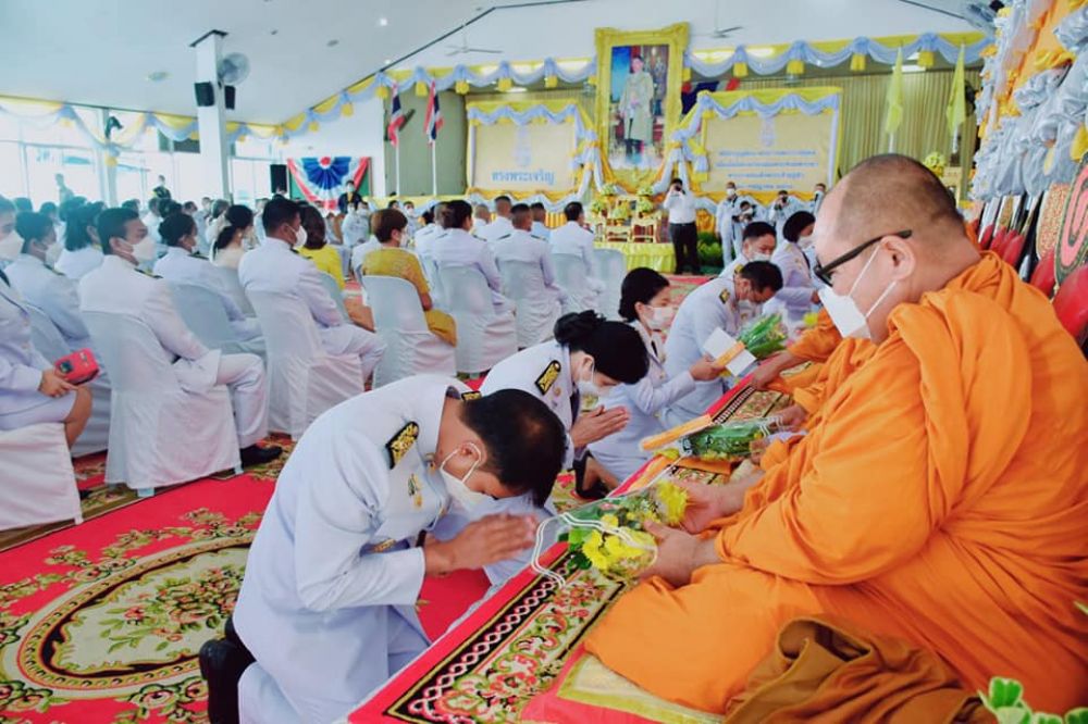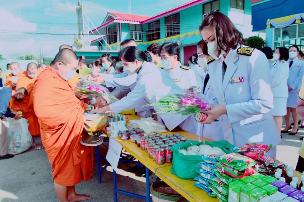 พีธีทำบุญตักบาตรพระสงฆ์ โดย ในพิธี ประกอบไปด้วย การทำบุญใส่บาตรข้าวสารอาหารแห้ง พระภิกษุสงฆ์ จากนั้นประกอบพิธีเจริญพระพุทธมนต์ ถวายเป็นพระราชกุศล พิธีถวายสัตย์เพื่อปฏิญาณเพื่อเป็นข้าราชการที่ดีและเป็นพลังของแผ่นดิน