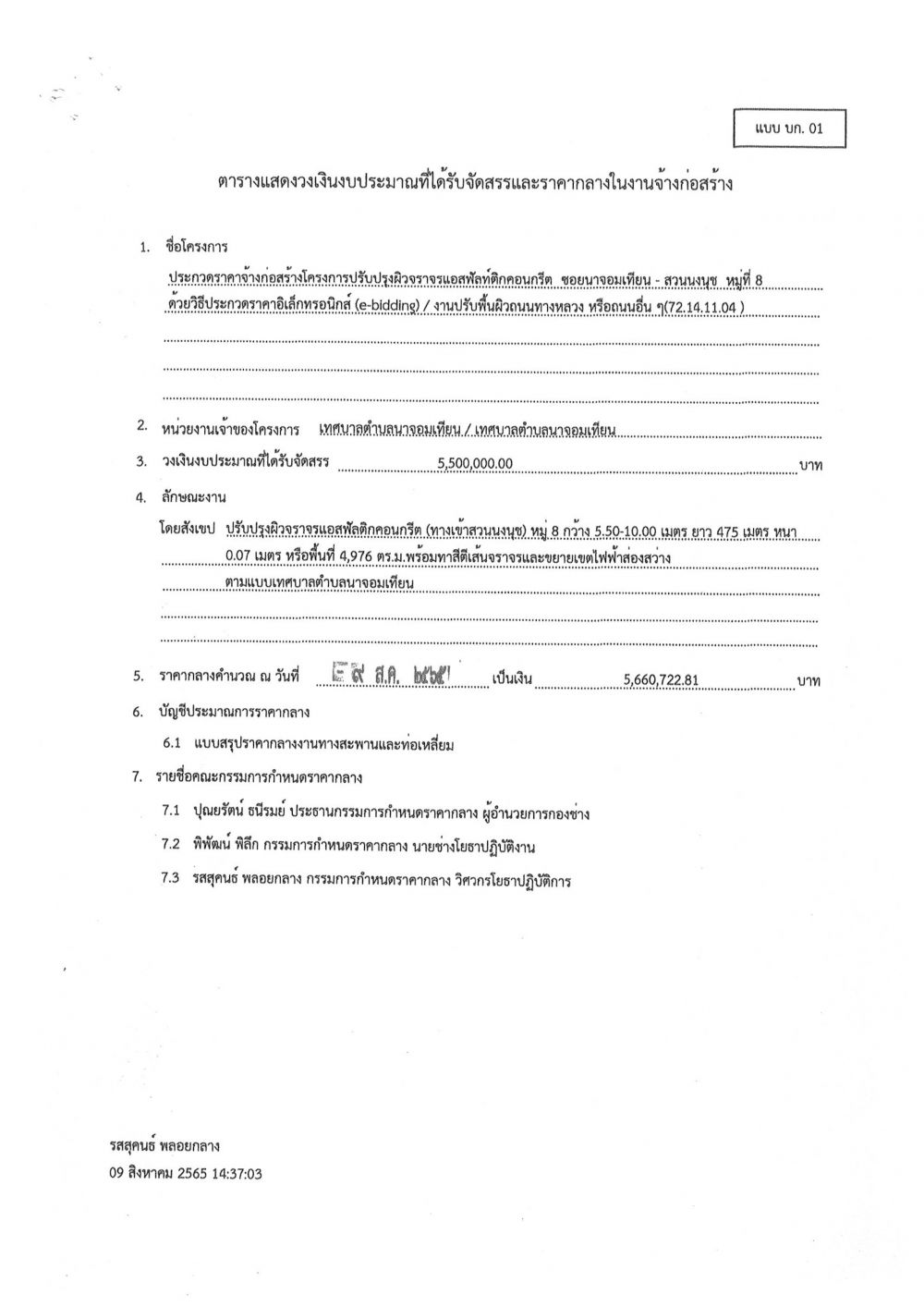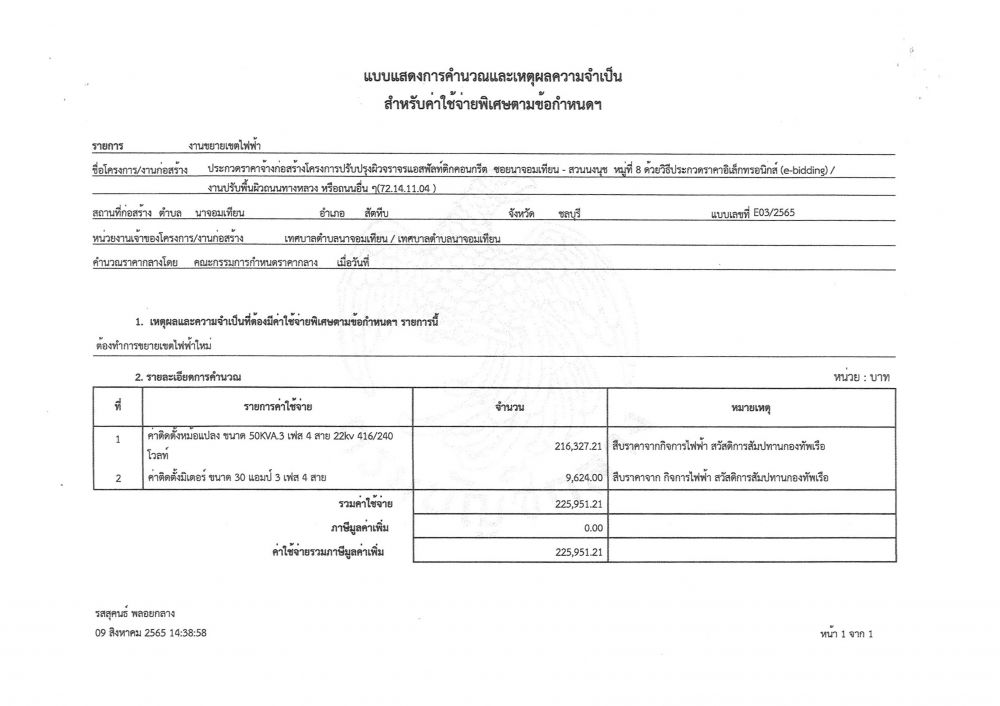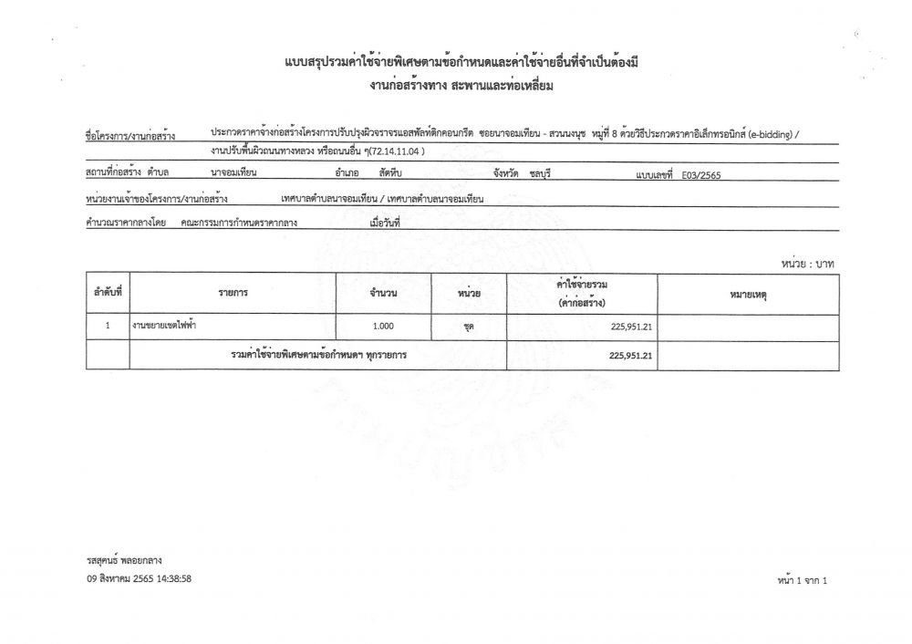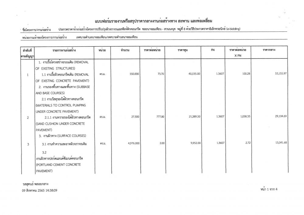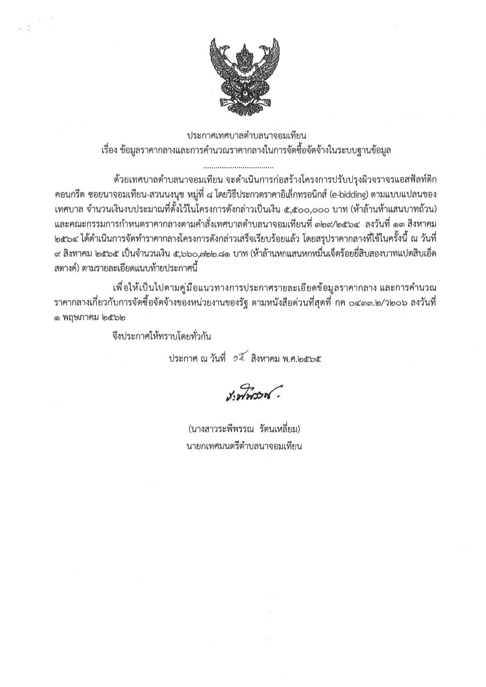 ประกาศข้อมูลราคากลางและการคำนวณราคากลางในการจัดซื้อจัดจ้างในระบบฐานข้อมูล โครงการปรับปรุงผิวจราจรแอสฟัลท์ติกคอนกรีต ซอยนาจอมเทียน - สวนนงนุช หมู่ที่ ๘ โดยวิธีประกวดราคาอิเล็กทรอนิกส์