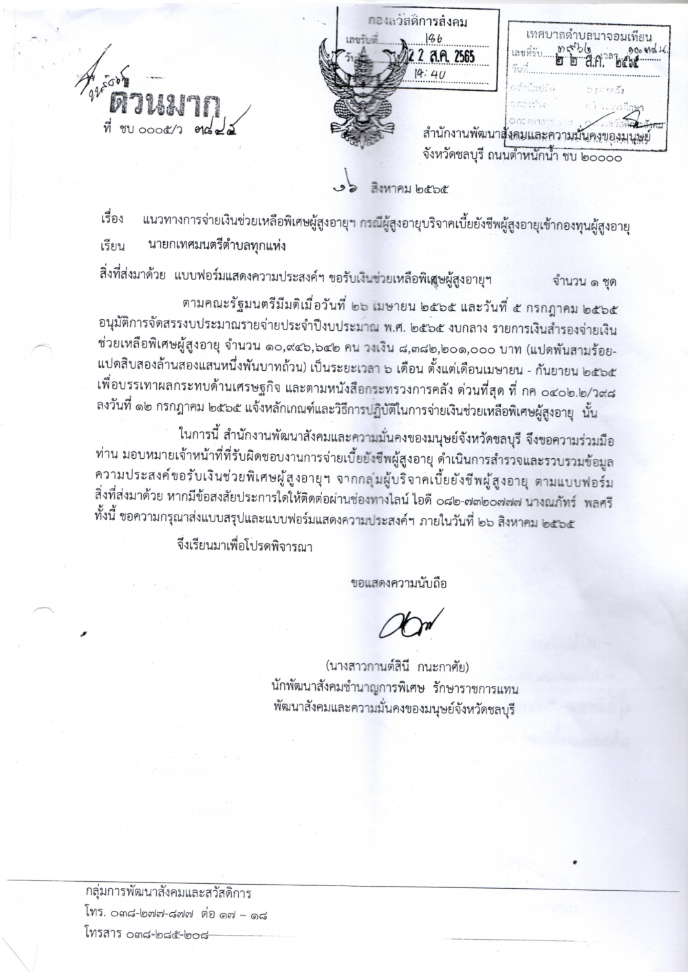 ประชาสัมพันธ์ แนวทางการจ่ายเงินช่วยเหลือพิเศษผู้สุงอายุฯ กรณีผู้สูงอายุบริจาคเบี้ยยังชีพผู้สูงอายุเข้ากองทุนผู้สูงอายุ