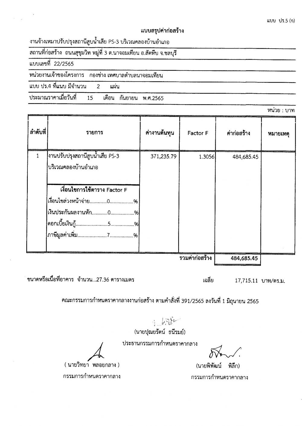 ข้อมูลราคากลางและการคำนวณราคากลางในการจัดซื้อจัดจ้างในระบบฐานข้อมูลโครงการจ้างเหมาปรับปรุงสถานีสูบน้ำเสีย PS-๓ บริเวณคลองบ้านอำเภอ