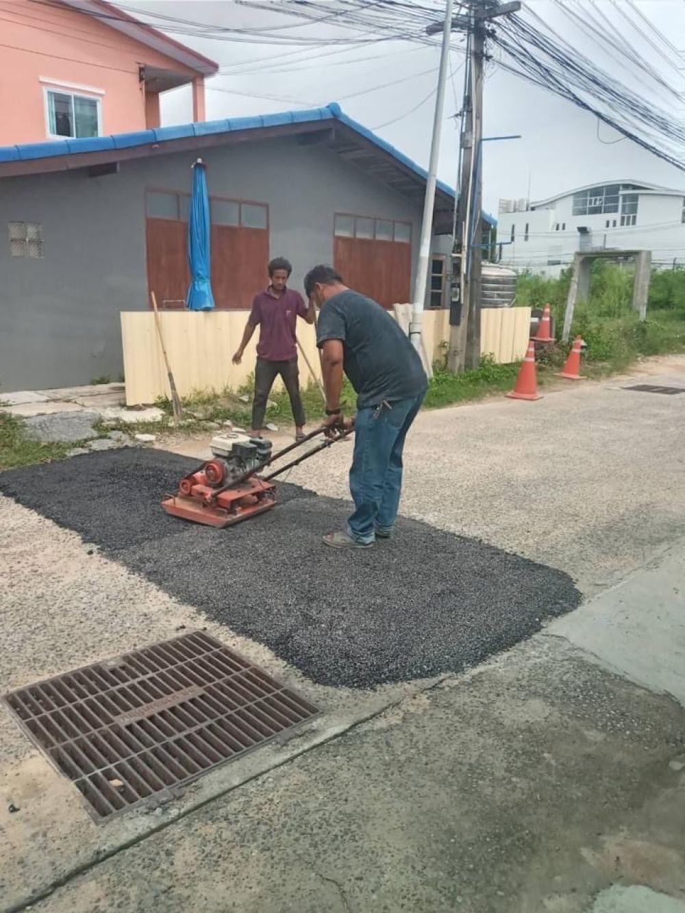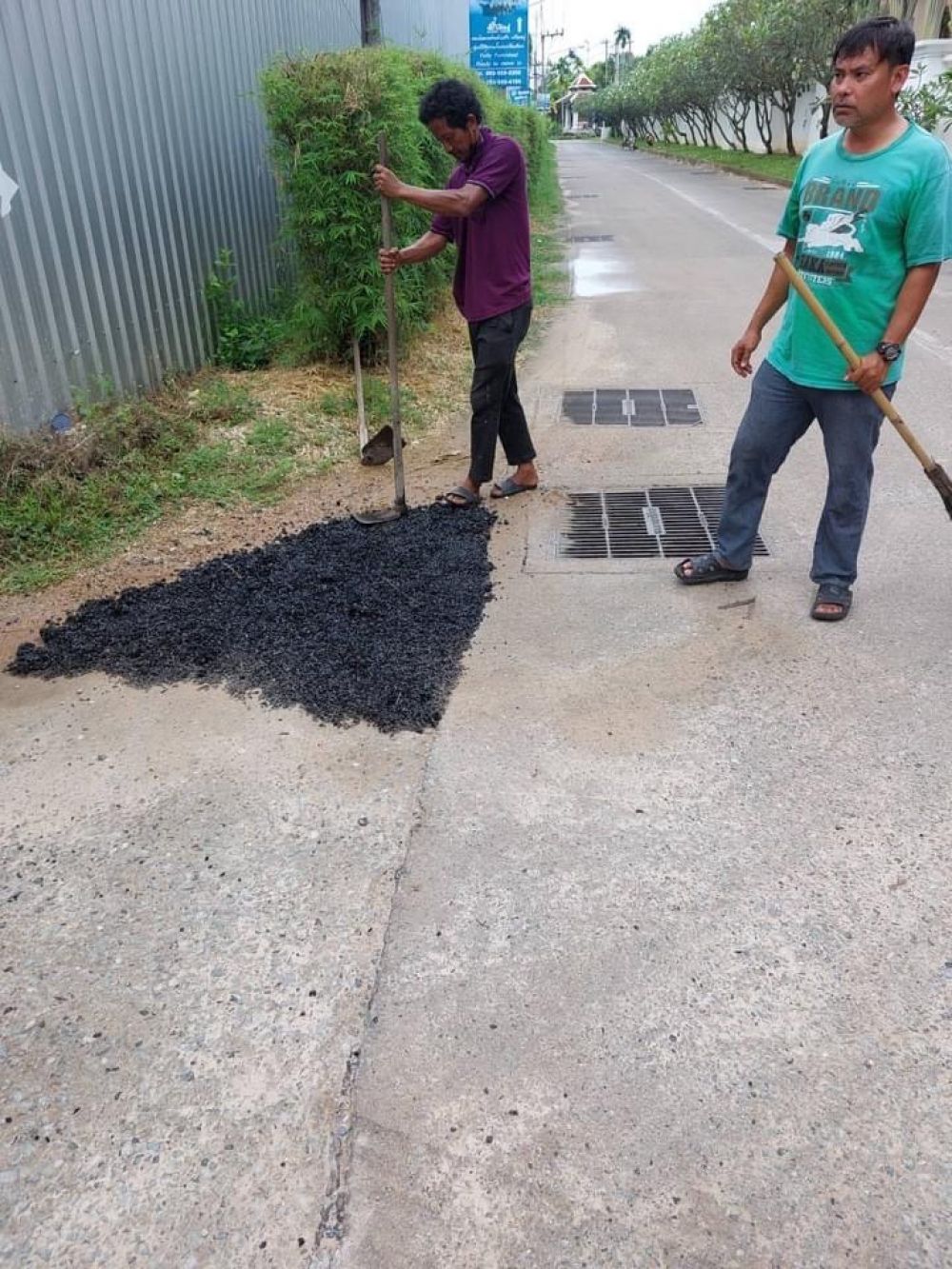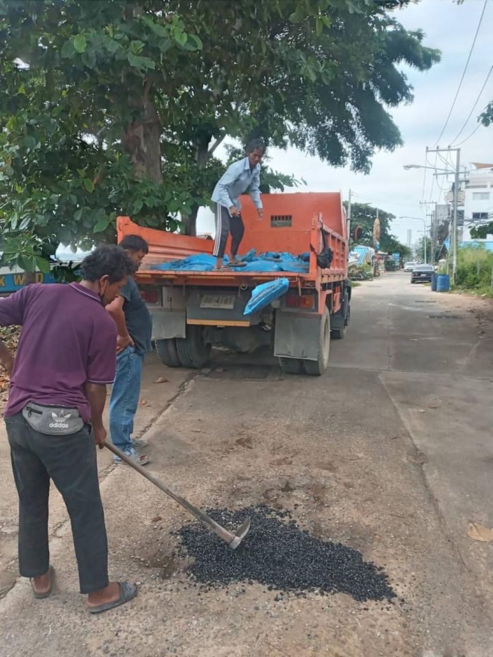 วันพฤหัสบดีที่ 22 กันยายน 2565 เรื่อง นำยางมะตอยปะถนนซอยนาจอมเทียน 8 ซ่อมไฟซอยนาจอมเทียน