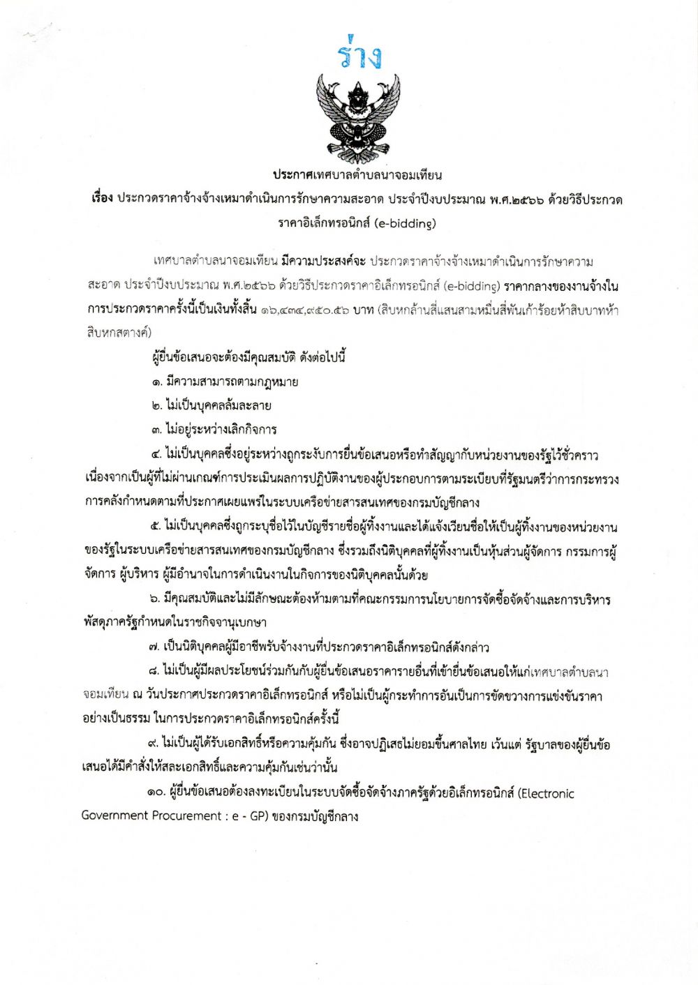 ร่าง เรื่องประกวดราคาจ้างเหมาดำเนินการรักษาความสะอาด ประจำปีงบประมาณ พ.ศ.๒๕๖๖ ด้วยวิธีประกวดราคาอิเล็กทรอนิกส์
