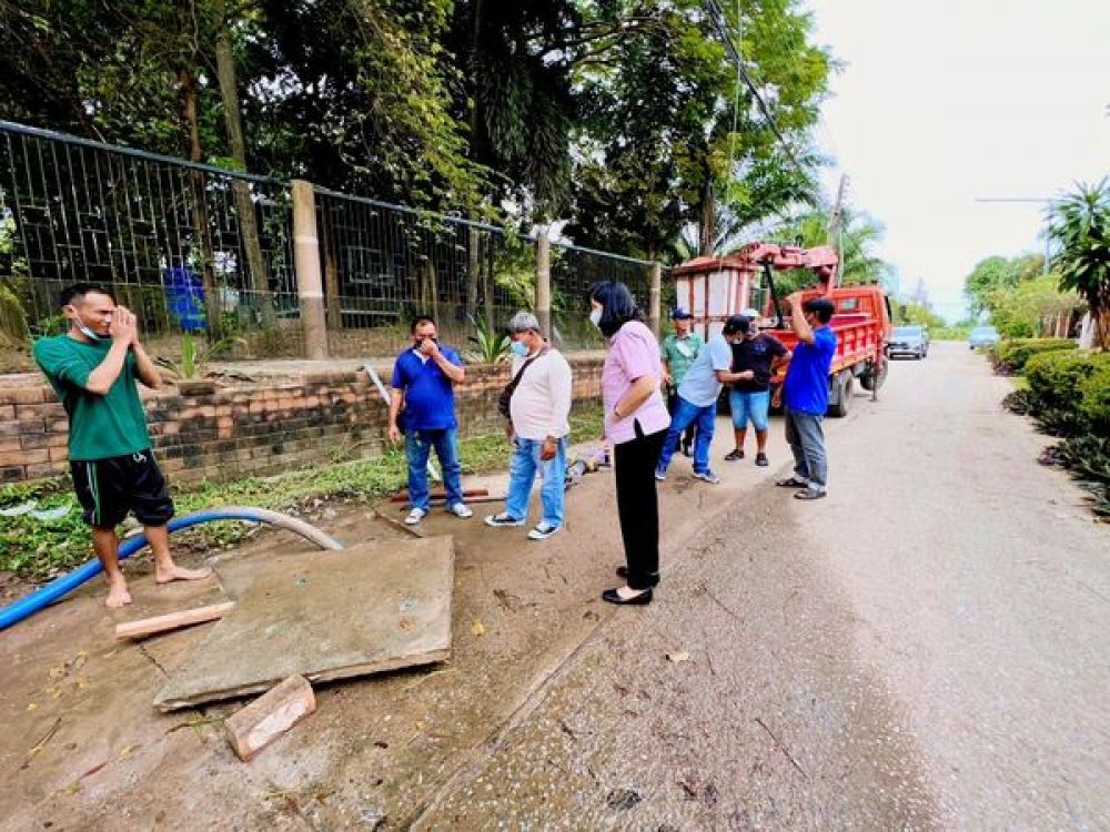การลงพื้นที่สำรวจในกรณี น้ำผุดจากท่อระบายน้ำส่งผลทำให้น้ำเอ่อท่วมถนนซอยนาจอมเทียน 21
