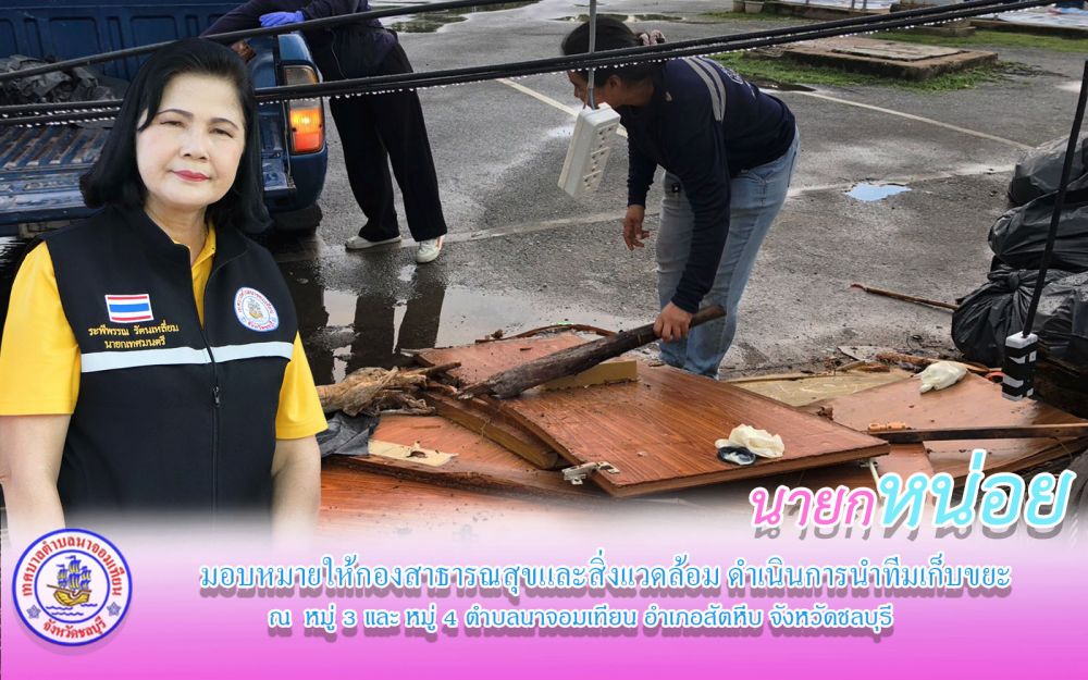 วันพฤหัสบดีที่ 10 ตุลาคม 2567 เวลา 15.43 น. ผู้บริหารเทศบาลโดยนางสาวระพีพรรณ รัตนเหลี่ยม นายกเทศมนตรีตำบลนาจอมเทียน มอบหมายให้กองสาธารณสุขและสิ่งเเวดล้อม ดำเนินการนำทีมเก็บขยะชิ้นใหญ่ที่มีผู้ลักลอบนำขยะมาทิ้ง เพื่อความสะอาดแก่การรักษาสิ่งแวดล้อมและเสริมสร้างคุณภาพชีวิตให้ดีขึ้นต่อไป