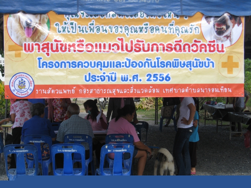 ตามที่เทศบาลตำบลนาจอมเทียนได้จัดทำโครงการควบคุมและป้องกันโรคพิษสุนัขบ้า ประจำปี ๒๕๕๖ ระหว่างวันที่ ๒๒-๓๐เมษายน ๒๕๕๖ พร้อมให้บริการทำหมันสุนัขและแมว ร่วมกับทีมงานปศุสัตว์จังหวัดชลบุรีและปศุสัตว์อำเภอสัตหีบ ในวันที่ ๗ พฤษภาคม ๒๕๕๖ นั้น มีสุนัขและแมวได้รับการฉีดวัคซีนและทำหมันในครั้งนี้ จำนวนทั้งสิ้น ๑,๕๒๔ ตัว