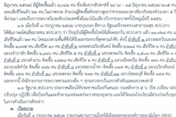 สถานการณ์การแพร่ระบาดของโลกไข้เลือดออกในประเทศเพื่อนบ้าน